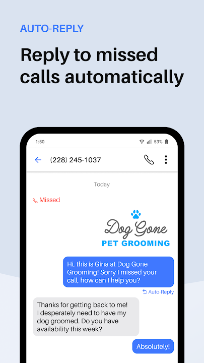 使用自動回復將未接來電變成機會。當您無法接聽電話時,Index 會立即發送自定義的品牌文本消息以保持客戶對話的進行。分享時間、重要鏈接和任何其他可能幫助您贏得新業務的信息。