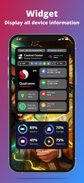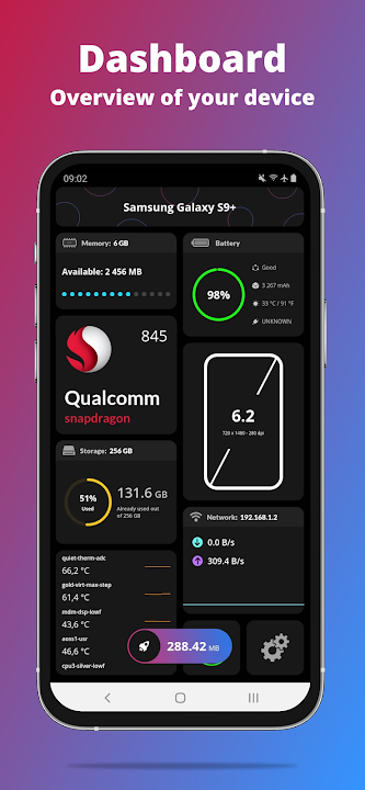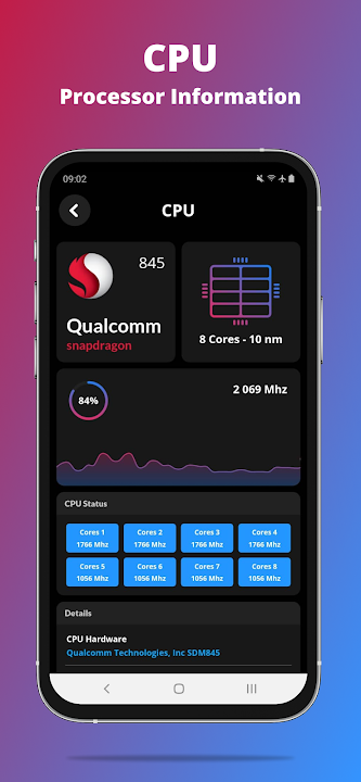 G-CPU is a simple, powerful, and free application that gives you complete information about your mobile device and tablet with advanced user interfaces and widgets. G-CPU includes information about CPU, RAM, OS, Sensors, Storage, Battery, Network, System Apps, Display, Camera, etc. Also, G-CPU can benchmark your device with hardware tests.