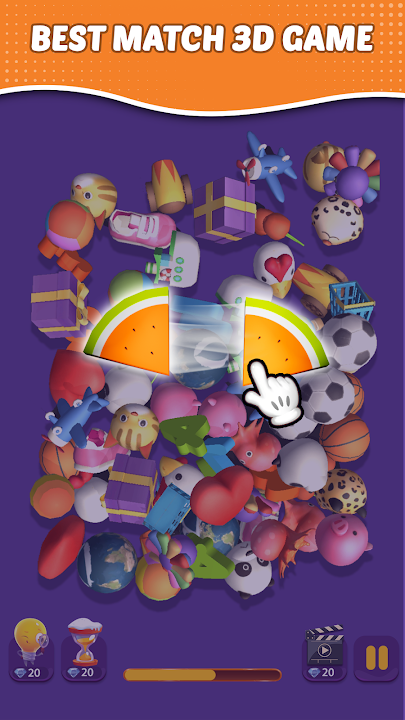 你只需找到、點擊並匹配相同的 3D 物體,讓它們從雜亂的物體中彈出。在規定時間前收集地面上的所有 3D 物體,即可通過目前關卡! 🏆