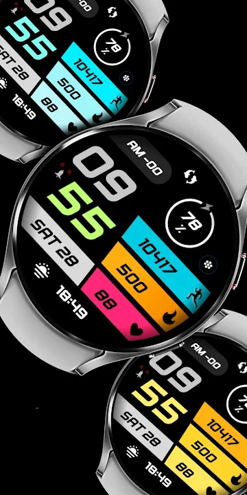 Modern & colorful digital watch-face with big bold digital time, date, Health information and many color styles perfectly fit your Wear OS device especially Samsung Galaxy Watch, Pixel Watches and all wearable smartwatches.
