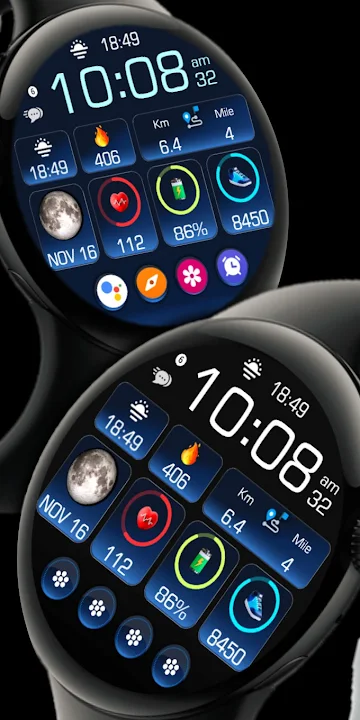 酷炫的锻炼 模块化月球跟踪器和数字信息器,具有许多并发症和所有健康信息,可跟踪您的健康数据。 Wear OS 智能手表的完美选择。