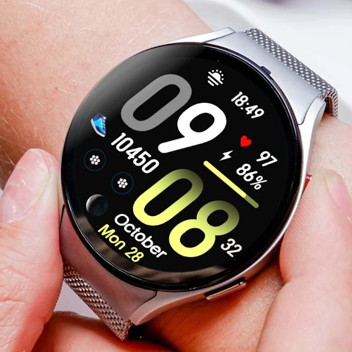 适用于所有 Galaxy 可穿戴智能手表 Wear OS 的大而大胆的数字时间表盘
