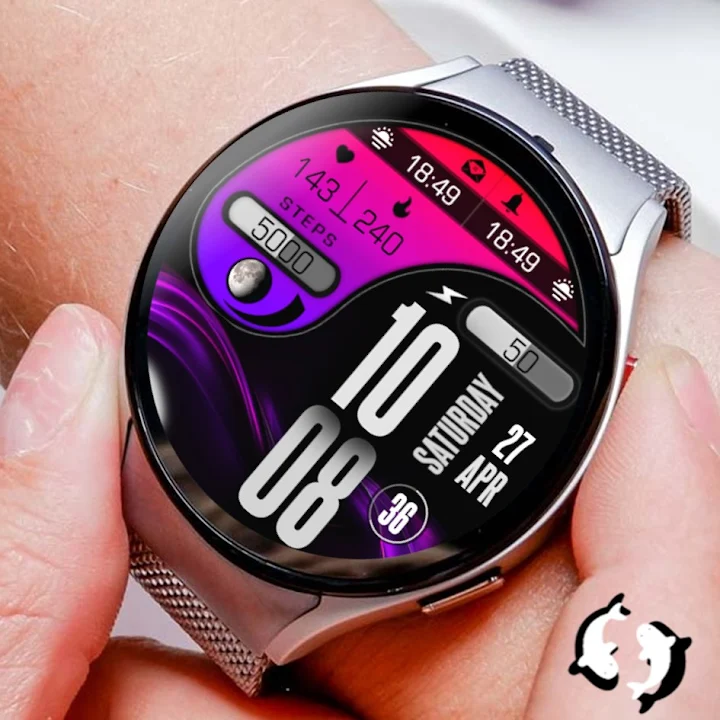 Health & Fitness Tracker in Yin Yang style. Unique experience with design in high quality resolution with many color & styles options. For all modern watch-face lovers with Gradient display colors & 3D Artistic Background.
