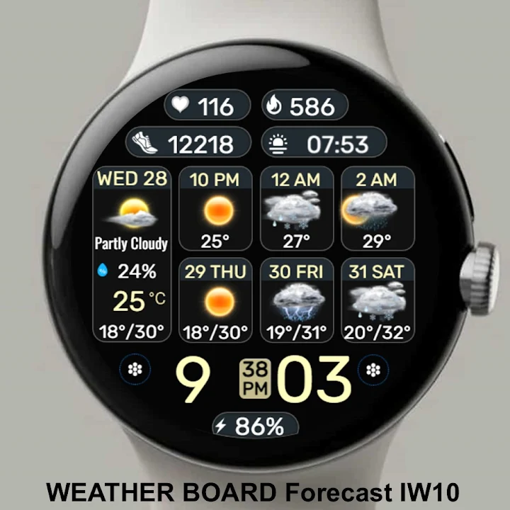Weather Board is watch-face for 3 Days full data & hourly forecast to track.