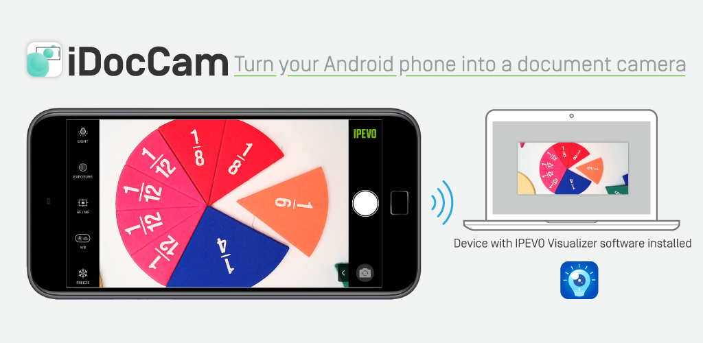 Install iDocCam on your phone. Next, install IPEVO Visualizer software on another device (Mac/PC/Chromebook/iOS & Android devices).