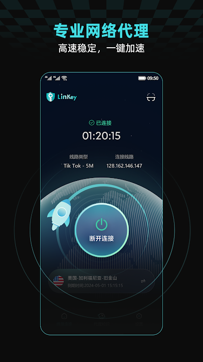 The core of Linkey's product service is to provide a virtual network for dedicated and secure data transmission. After you use the software acceleration, all your Internet communications will be routed through our network, thereby achieving the role of network acceleration. In any case, our client will establish and maintain an encrypted tunnel between your browser or device and our network.