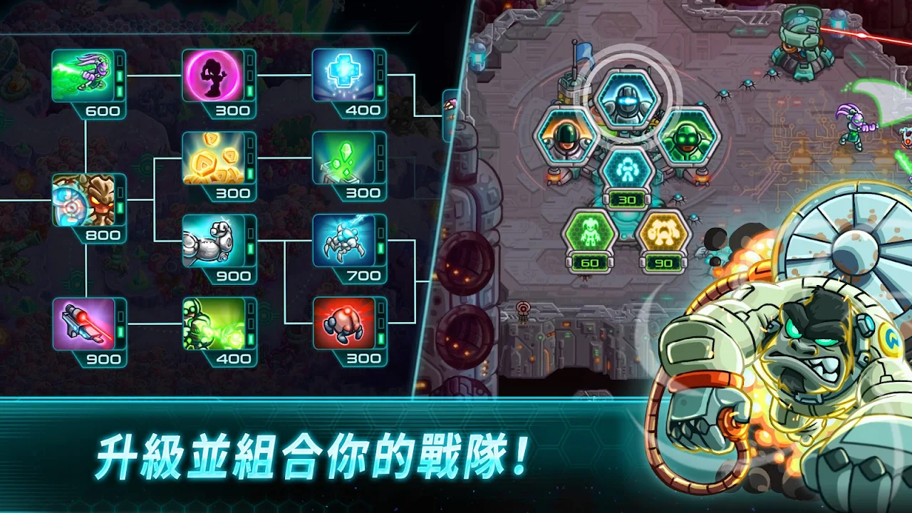 40+升級以提升你的戰略,同時授予你的部隊防禦無人機,凝固汽油彈火箭,反彈爆炸和更多的器械可使用。