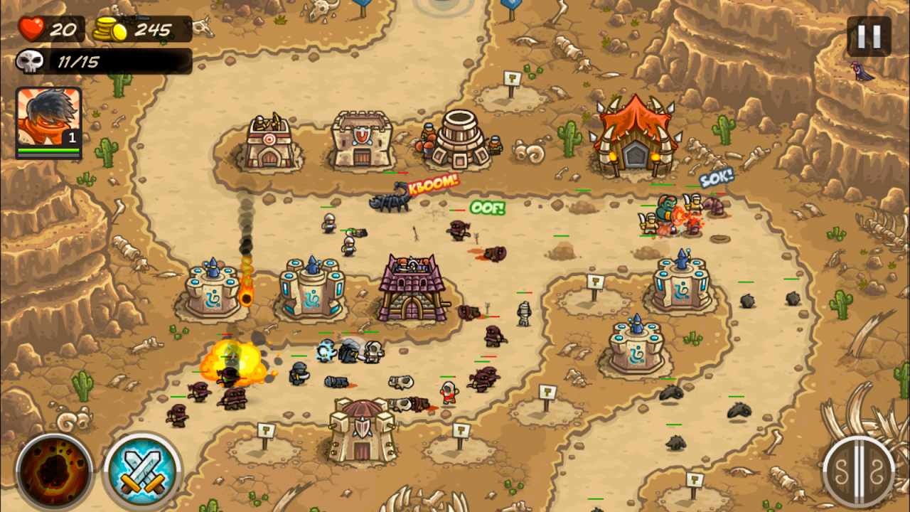 • 八种全新专业防御塔升级! 你可以用弩兵堡垒、强大的圣殿骑士、亡灵甚至地震机切开、烤焦和践踏你的敌人 —— 嘿,跟你说过已经不一样了。