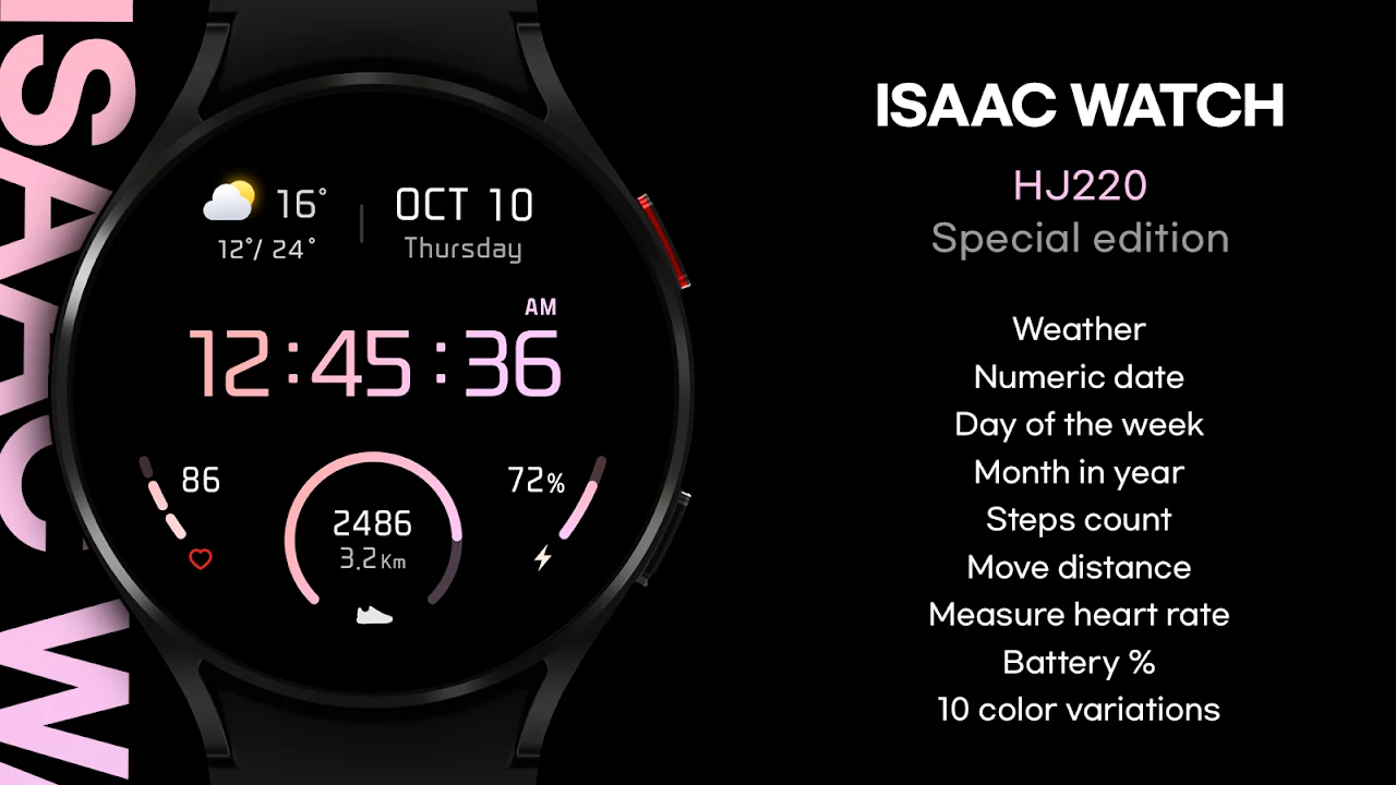 此錶盤使用三星全新「Watch Face Studio」工具開發,適用於基於 Wear OS 的裝置。