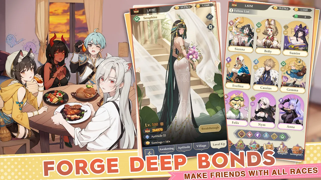 Experience the joy of hatching and raising magical monsters, then combine them to create entirely new species! These loyal monsters will work tirelessly, contributing to your village's growth at no cost!