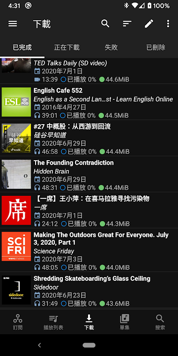 - 同時支持音頻和視頻播客。您可以訂閱,瀏覽和播放任何播客。