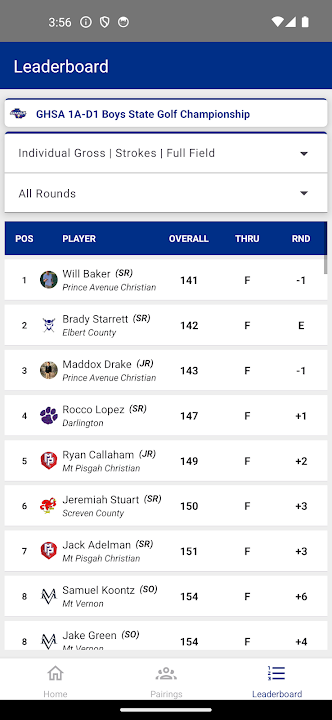 Live Scoring for GA HS Golf