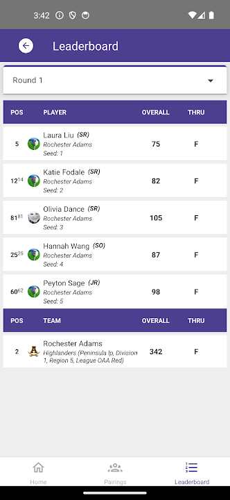 After tournaments are finalized, state, regional and local rankings are automatically updated to show how teams and golfers stack up against their competition. Statistics are captured and aggregated on the mobile app so coaches, players and spectators can track progress throughout the season.