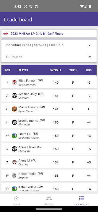 Live Scoring, Leaderboards, Rankings & Statistics for Michigan High School Golf