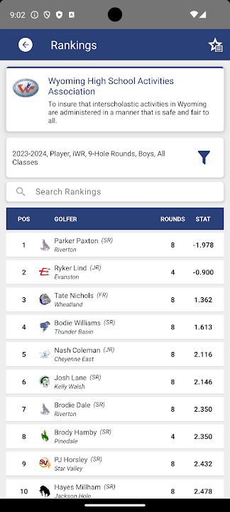 Live scoring for Wyoming high school Golf