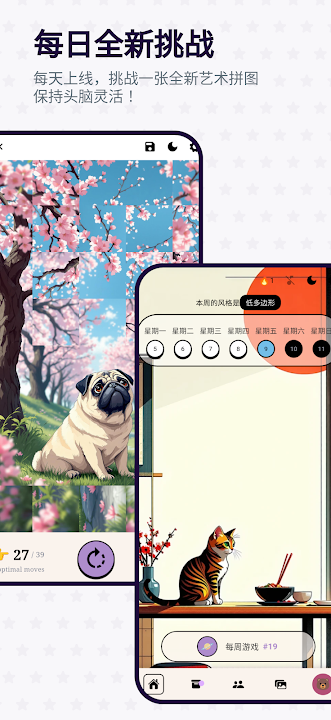 - 每日挑战:每天一张全新艺术图片,解锁你的拼图乐趣