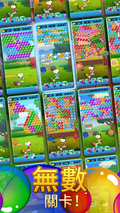 立即在這款免費泡泡射擊劇情遊戲中,展開你的益智之旅,爆破泡泡!磨練技術,成為最強的泡泡射擊手!還在等什麼?現在就來玩《史努比泡泡》!