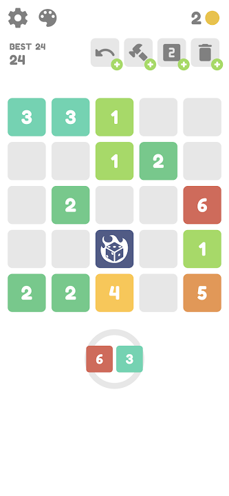 合并三个或更多相邻的、数字和颜色相同的骰子,即可获得更高数字的方块。