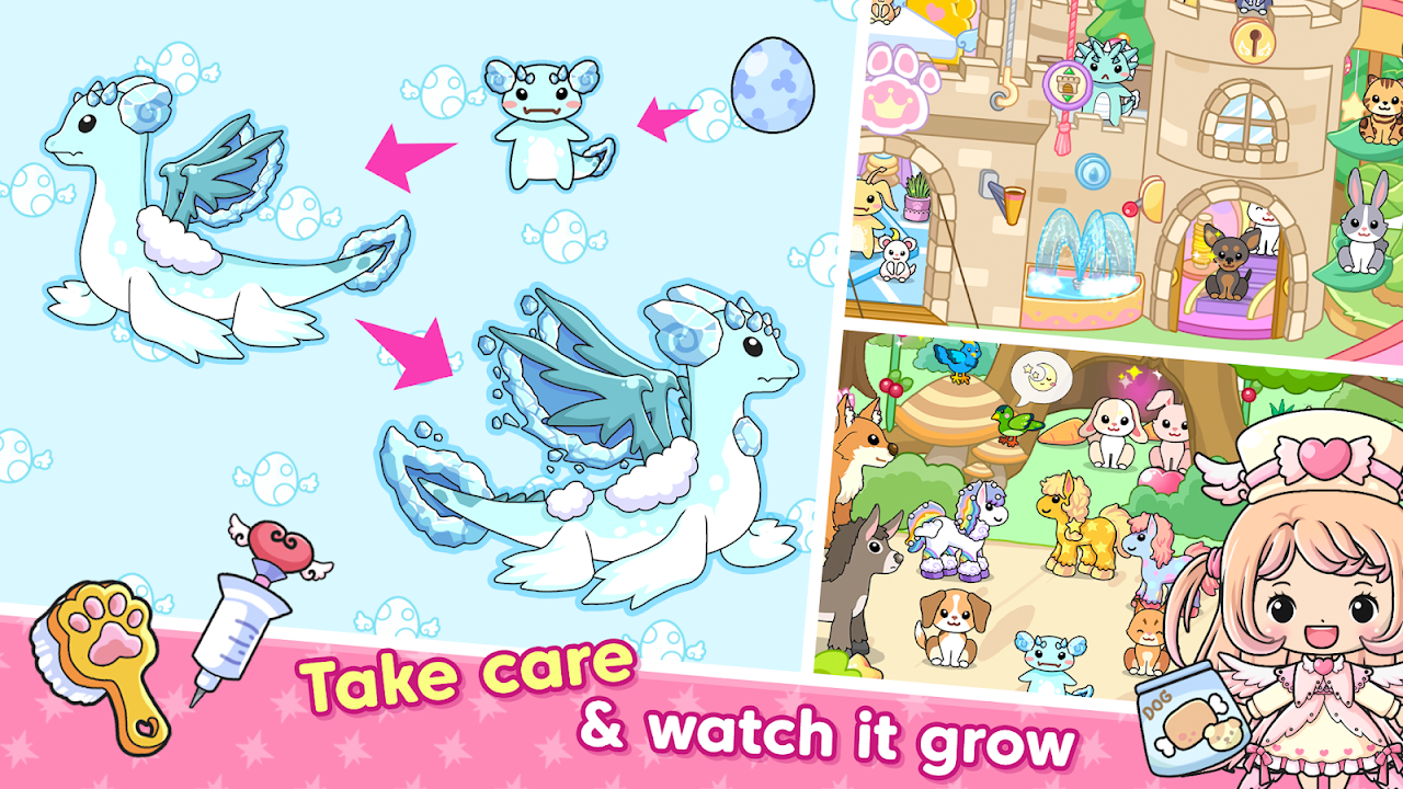超过100种动物角色供你养和照顾,如小独角兽、小仙子、淘气的猫和可爱的狗。