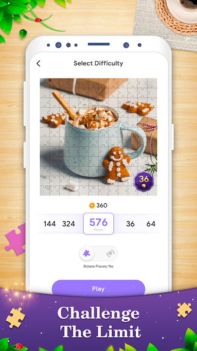 · 拼图块数从12块到280块不等。块数越多,拼图难度越高。按照自己的节奏进行游戏:根据自己的喜好调整拼图的难度。