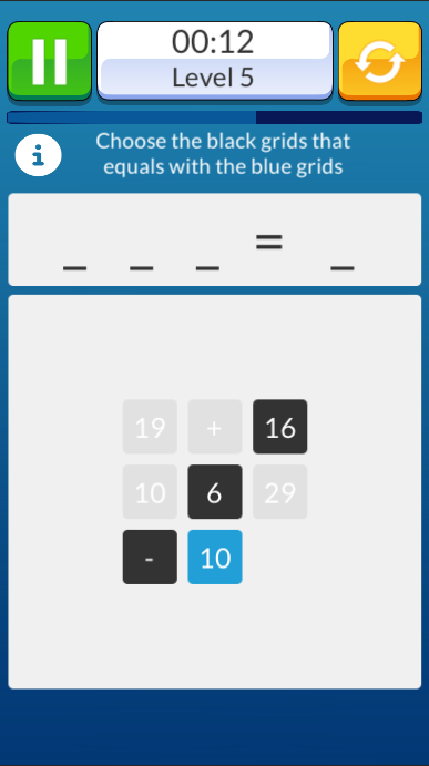 Maths: Endless Puzzle is a fast-paced number game designed to test and improve your mental math skills. Select numbers and operators to solve equations shown on the board, all while racing against the clock. Be careful—order matters for some operations! As you progress, the puzzles become more challenging, keeping you on your toes. Can you solve them all before time runs out? new levels to improve your math abilities in this fun, brain-training puzzle game!