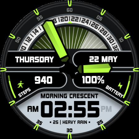 Presenting PrimeTime, a high-performing hybrid digital-analog watch face designed for modern go-getter. PrimeTime does more than simply display time; it defines it with its striking contrast, crisp data presentation, and dynamic design elements. Every statistic, including your steps, battery, and weather, is presented clearly and purposefully.