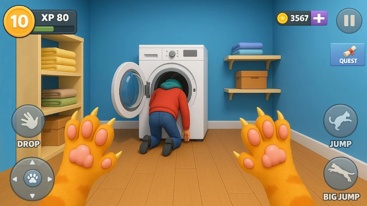 🐾 扮演一只狡猾的猫咪——奔跑、跳跃、抓挠,到处制造混乱!