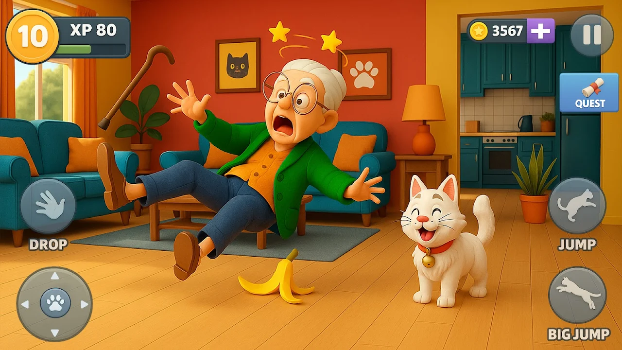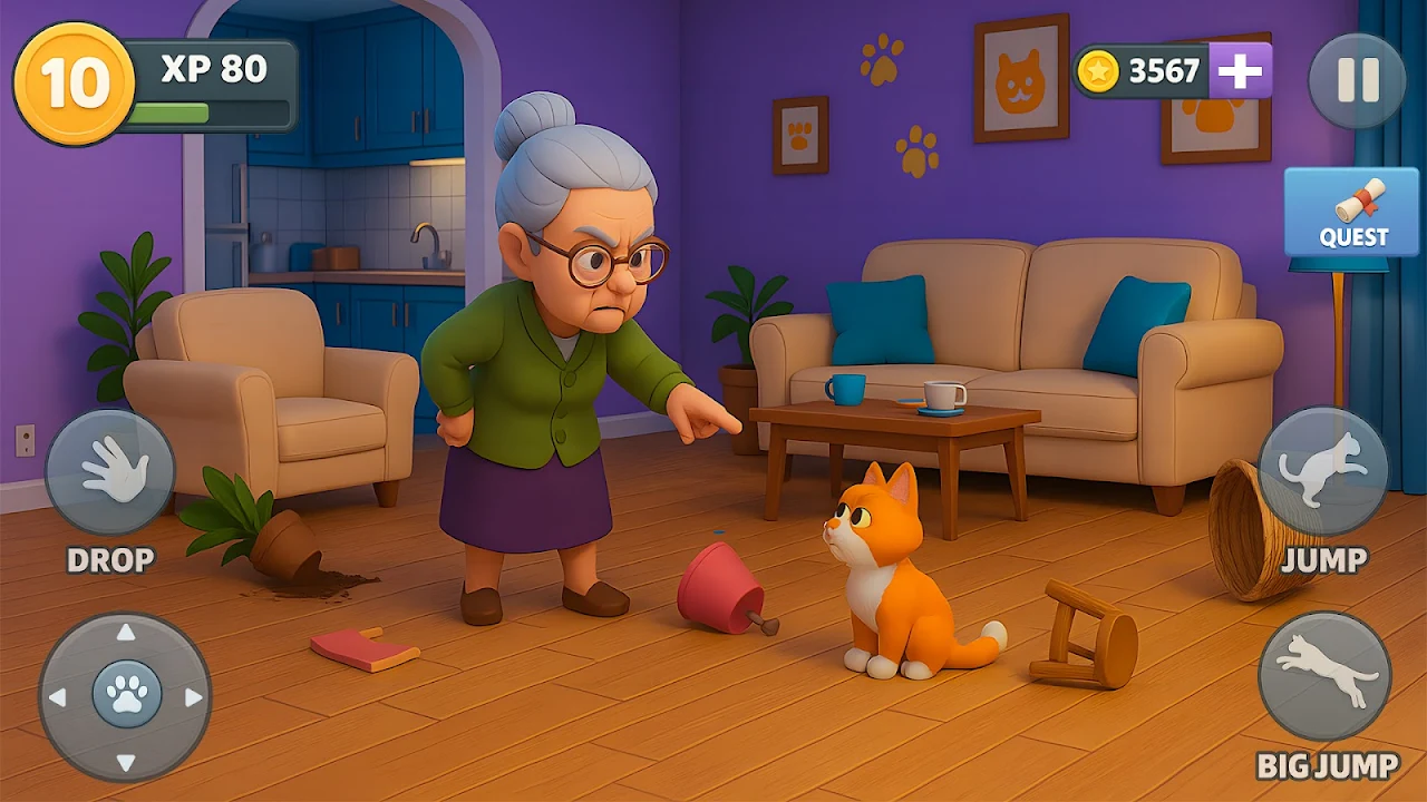 无论你是躲在沙发底下,在客厅里飞奔,还是耍出最傻的花招,每次追逐都会带来爆笑惊喜。你会成为终极恶作剧猫,让奶奶抓狂,还是最终被奶奶抓住?欢乐之战,现在就打响!
