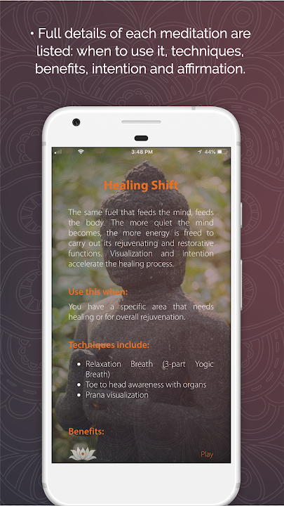 • Flexible Sessions: Guided meditations range from 2 minutes to 45 minutes, fitting any schedule.