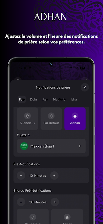 • Adhan 通知:从优美的祈祷召唤中选择。