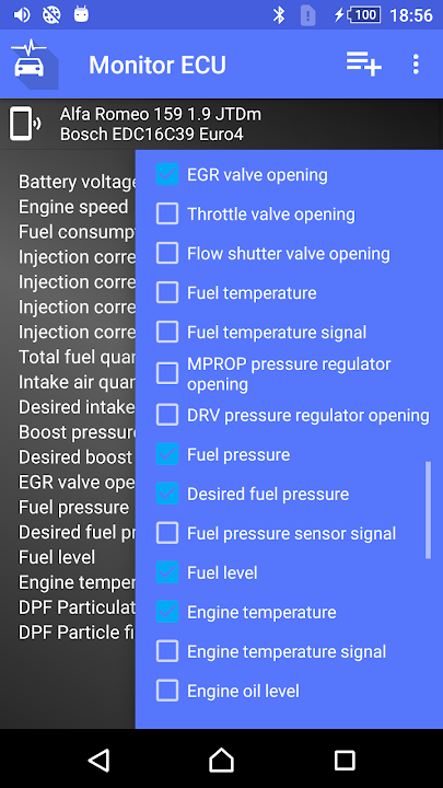 The application requires the OBD ELM327 Bluetooth/WiFi interface, which you can plug into the car's diagnostic connector. We recommend using the Vgate iCar, Konnwei or ObdLink interfaces.