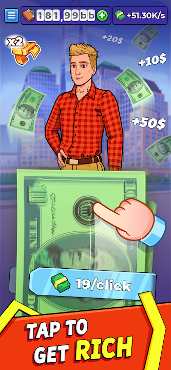 Make your dream to become a tycoon come true: click faster to double your cash, manage your job progress and tap till you become a true capitalist!