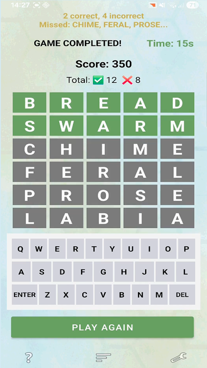測試你的記憶力!記住五個字母的單詞,然後在時間耗盡前回憶起來。