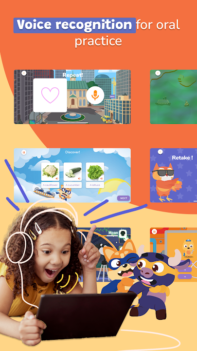 Children practice speaking: to learn a language you have to speak it! Our voice recognition system will allow children to practice on their own and improve their pronunciation. We make children proud to express themselves!