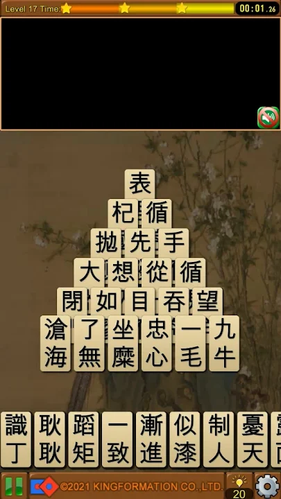 This is an idiom solitaire game. Just connect the upper and lower vocabulary of the four-character idiom into a correct idiom to eliminate the word cards. When all the screen questions are cleared, you can pass the level.