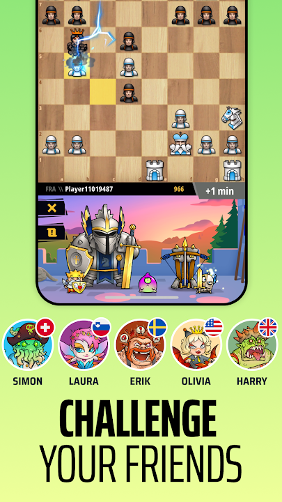 Compete against online players and try to get on your country Top 100 leaderboard. Advance your skills and rise to chess mastery.