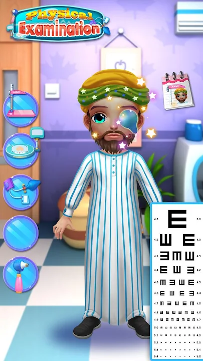 These poor people get sick. Can you help them do a full body examination? Bring them to do a blood test, blood pressure test, vision test and hearing test. Every patient has different sickness. Some of the patients break their bones. You need to find broken bones and fix them. Have fun with helping your patients regain health.