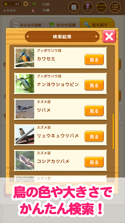 ■ Easy search by bird characteristics