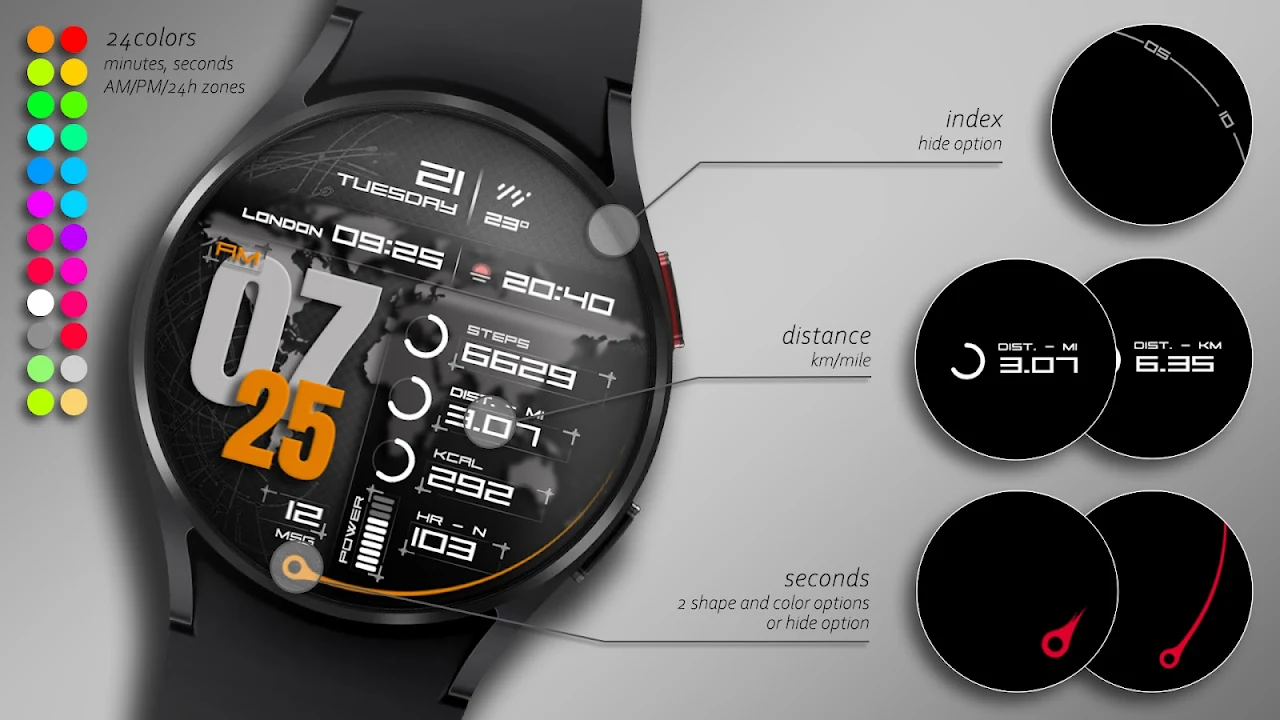 KTbw is a digital watch face for Wear OS.