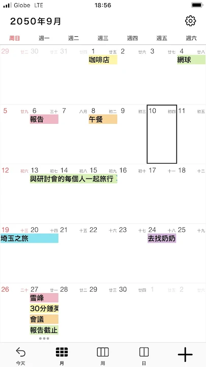 - 主題顏色和字體大小:用 15 種鮮豔主題和 10 種字體大小個性化您的日曆。