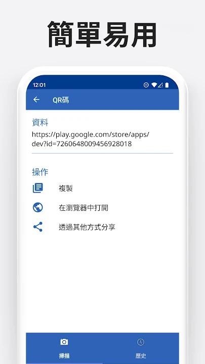 QR 閱讀器保存您的掃描歷史記錄,您可以隨時重新打開它。