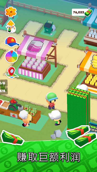 成为你城镇的老板:收集货物、收取现金并升级你的迷你市场。雇佣员工,在休闲又放松的同时,将你的小镇建设成一个巨大的市场帝国!