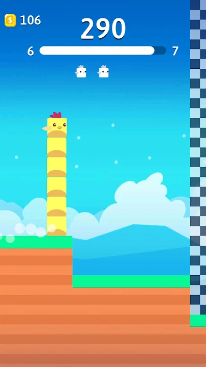 方块鸟的任务是飞往新的区域。堆叠一长串鸡蛋,并飞越过障碍物,达到新的等级和位置,并可以使用漂亮的鸟舍。