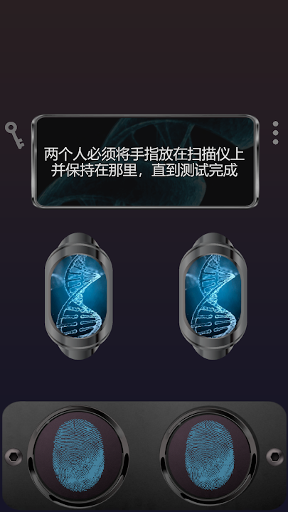 为了测试关系的概率,你和你的朋友必须将手指放在扫描仪上并保持在那里,直到测试完成。 检测器将分析信息并计算关系概率的百分比。