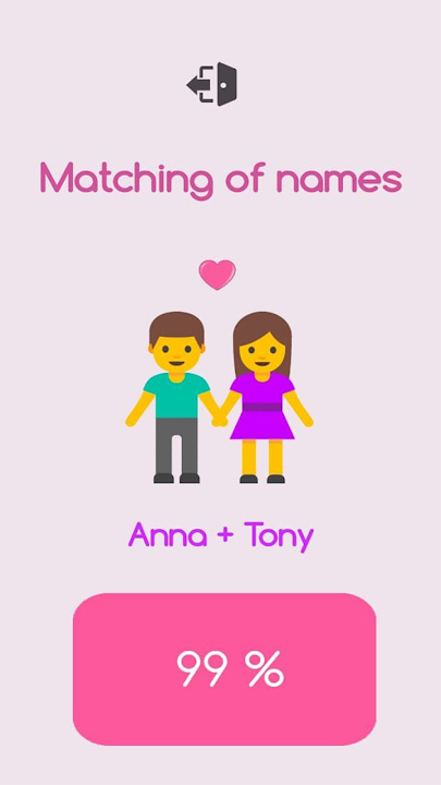 Our love calculator will count a percent of the probability that your chosen one matches you.