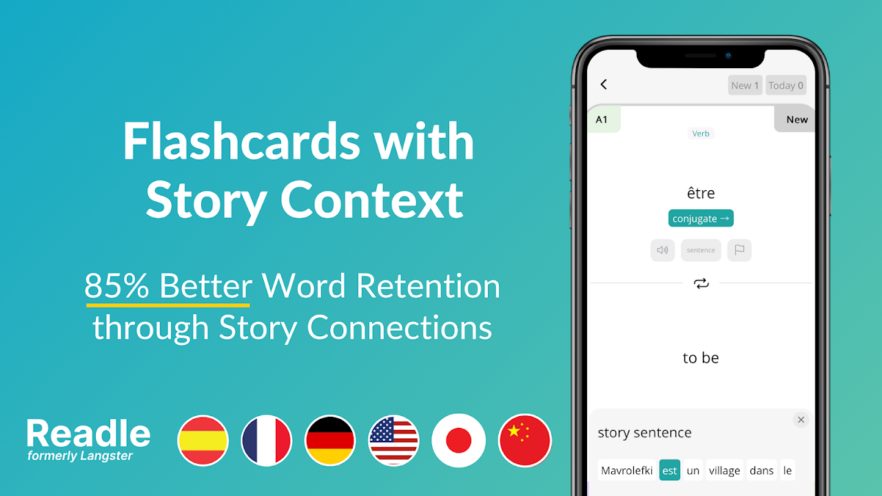 Learn languages faster with over 2,000 real-world news stories, transformed into bite-sized lessons and smart flashcards that make learning quick and effective. Readle (formerly Langster) is the worldโs first CEFR-levelled reader designed to help you learn Spanish ๐ช๐ธ๐ฒ๐ฝ , German ๐ฉ๐ช, French ๐ซ๐ท, English ๐ฌ๐ง๐บ๐ธ, Japanese ๐ฏ๐ต, and Chinese ๐จ๐ณ in real-world contexts. Just 5 minutes a day is all it takes to start learning smarter โ and faster.