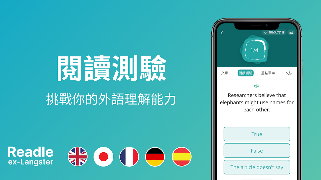 Readle每日語言學習:結合每日聽力、閱讀、文法、背單字練習,是最有效的英文、日文、法文、德文、中文、西班牙文等學習 app ,幫助你輕鬆學習外語!