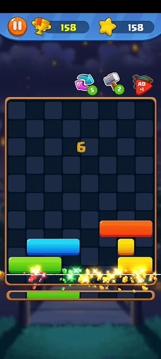 落砖拼图中,彩色方块从底部向上推。你需要水平向左或向右移动一个方块,如果其下方有空间,魔法打击就会落下。