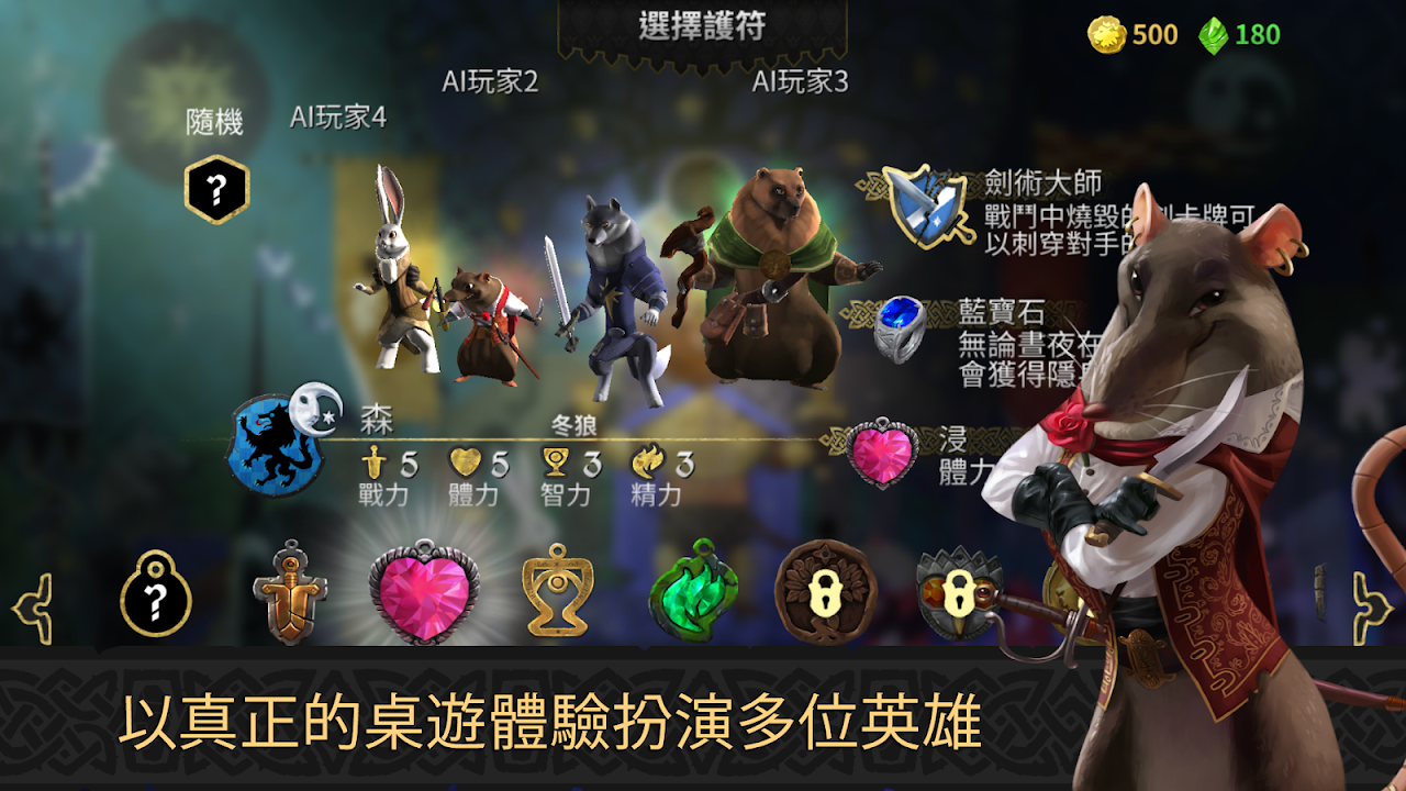 • 多位英雄可供選擇:每位獨特的英雄擁有一種特殊能量、斯達線和 AI 個性,可以配備護符和印戒以進一步配合您的玩法。