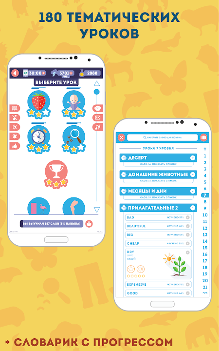 不需要知道如何閱讀如果您還不知道如何閱讀,沒問題!每個單字都有您的語言的轉錄!對於更有經驗的人,您可以在設定中選擇語音(如字典)轉錄。